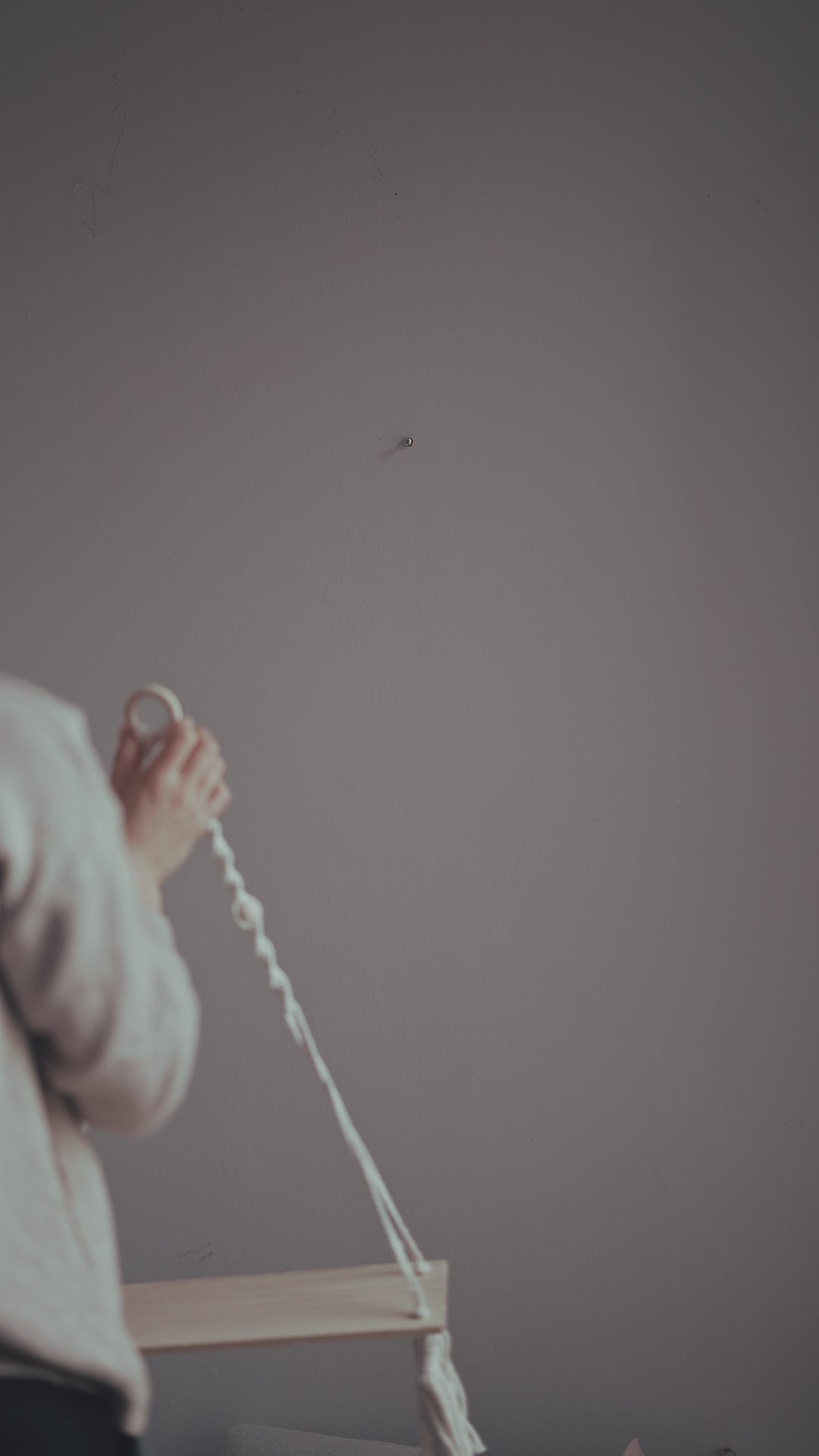 The wood's rich texture harmonizes with the intricate macrame weave, transforming a simple shelf into a statement piece.